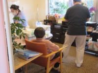 リハビリ途中で、ひと休みしてスタッフと