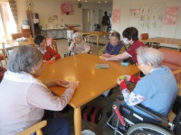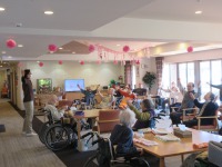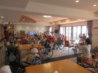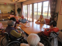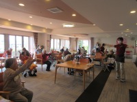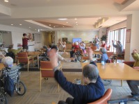 リハビリ指導員が昼食前の体操
