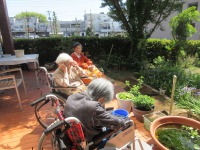 テラスに出て気分転換を図っております。