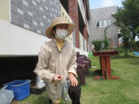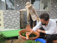 中庭の草むしりを趣味として行って
