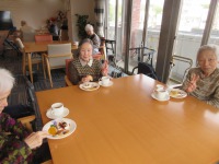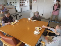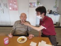 入居者様ケーキに夢中です。