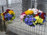 こちらは中庭ではなく、施設外掲示板下花壇です。