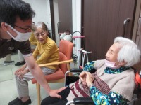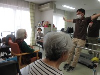 リハビリ指導員が入居者様数人集めて個別リハビリを