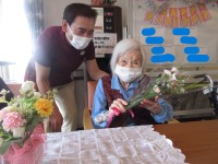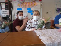 唄い施設からは花束💐のプレゼント🎁をお祝いとして
