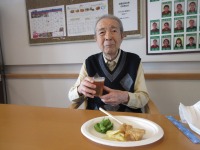 ロールケーキ(*^^*)男性入居者様ニコニコ笑顔で