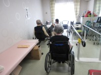 脚の訓練中!もう一方は平行棒歩行訓練中です。