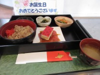 昼食にお誕生日のお祝いとしてプチケーキ🍰を