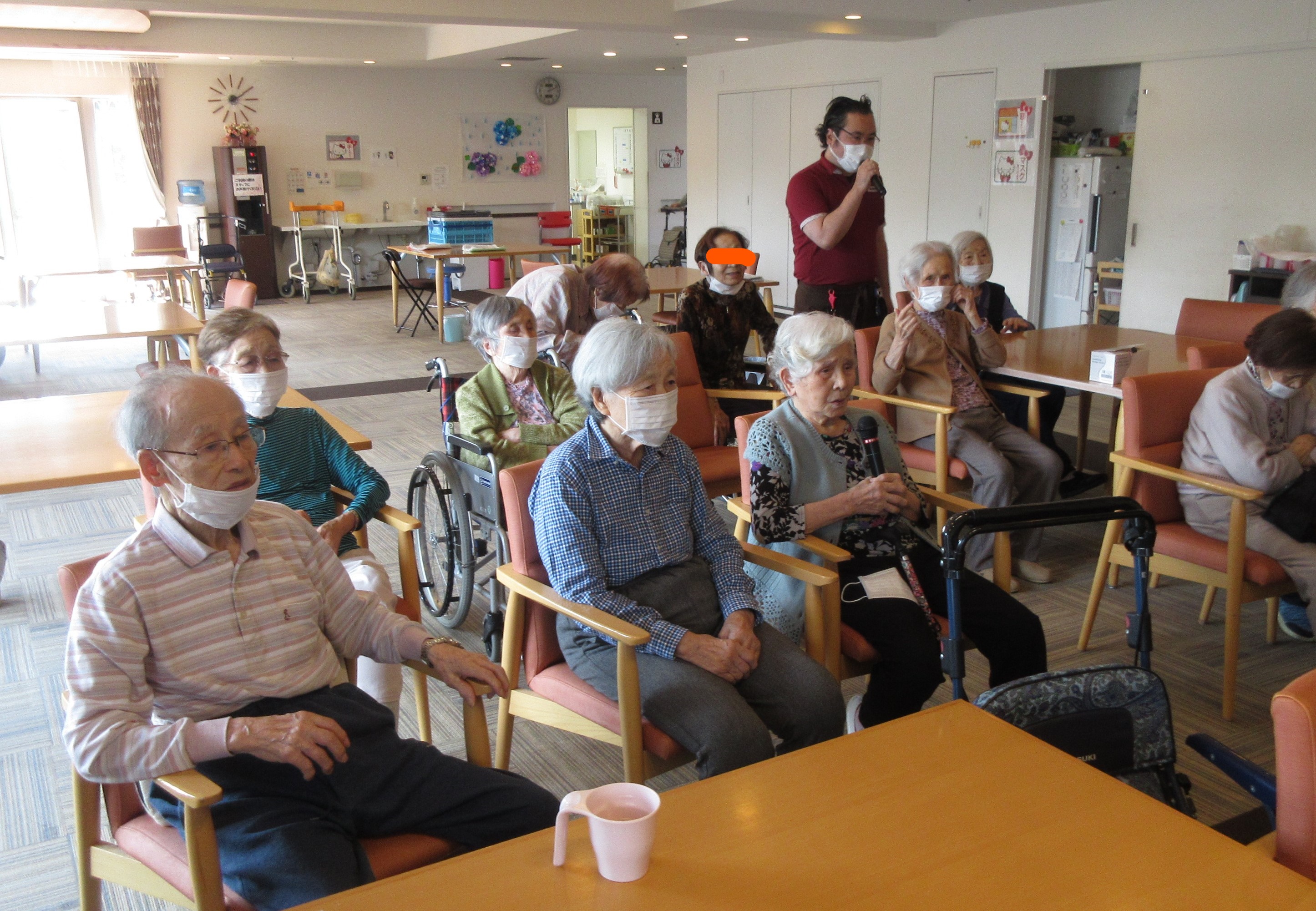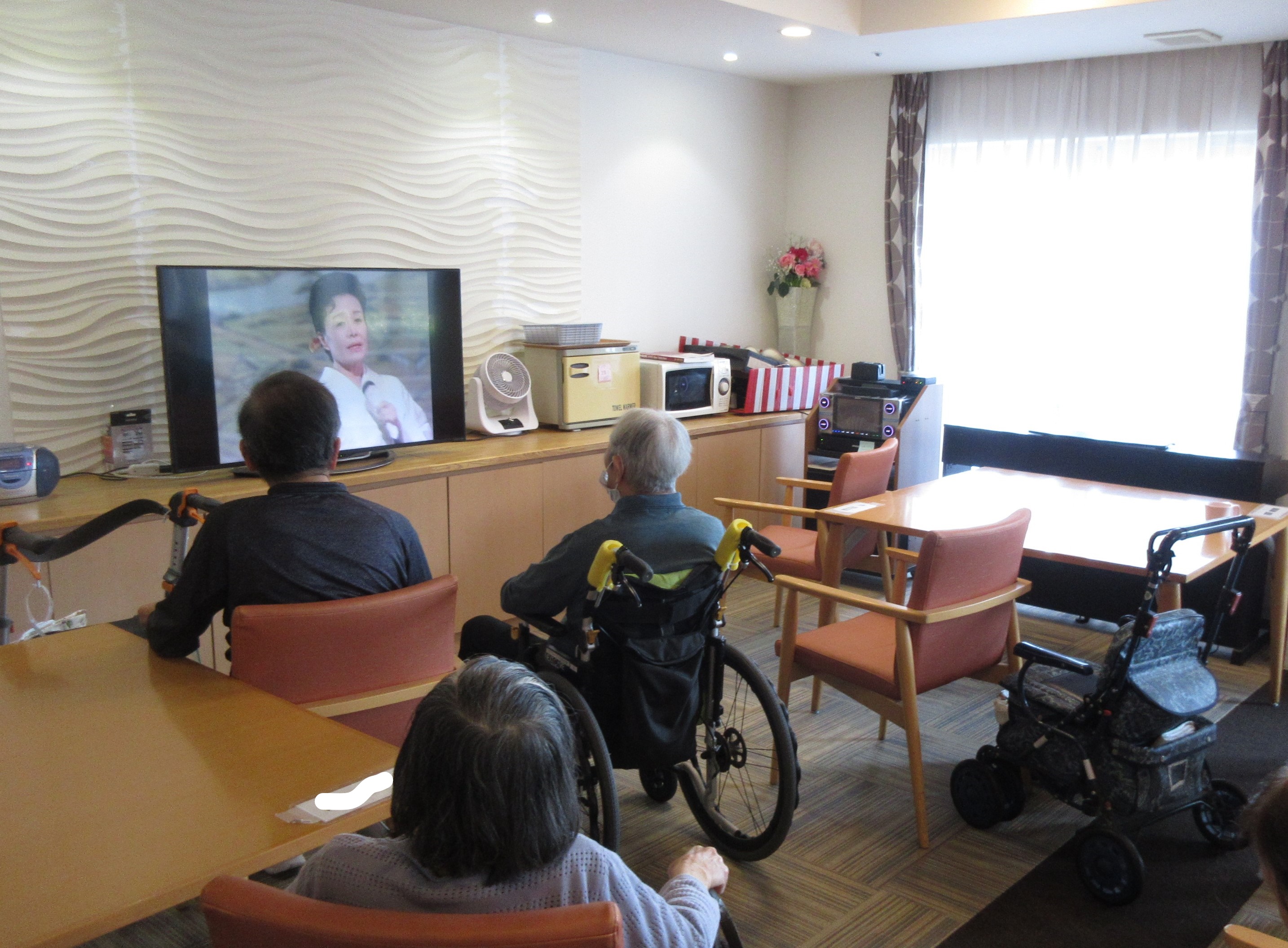 午後のレクリエーションは大人気のカラオケを楽んでいただきました。美声の持ち主の方が多くて、皆様その声に合わせてご一緒されていました!