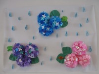 お花🌺紙と折り紙を使い紫陽花と☔を