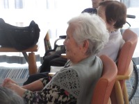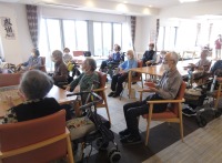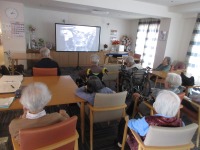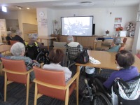 入居者様プロジェクター画面に見入って笑いがおきてました。