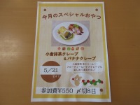今日のおやつタイムは月1回のお楽しみ!スペシャルおやつをご用意しました。バナナクレープに甘ーいクリームを添えてお抹茶の香りと共に味わっていただきました。