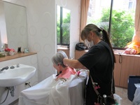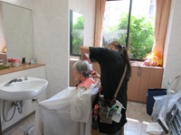 美容師さんは入居者さんとお話しつつ、手際よくカットを進めていきます。