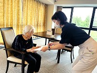 数え年で対象の方に、長寿お祝いとして感謝状をお渡ししました。