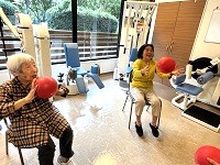 持ったまま腕を伸ばしたり縮めたり、みずから上に投げたものをキャッチしたり。