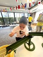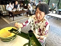 流れてきたそうめんをしっかりキャッチして、おつゆにつけて