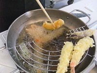 その場で天ぷらを揚げて、カラッとしている状態のものを