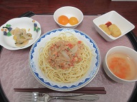 夏の定番の冷製スパゲッティは、少し細めの麺を使用しています。