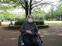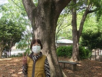 気持ちのよい空気をたくさん吸って、立派な木と緑を背景に