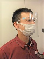 スタッフは全員フェイスシールドをつけて勤務をしています。