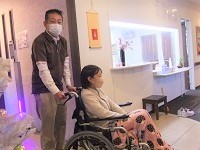 スタッフを車椅子に乗せて、試しにドライブしました♪
