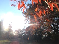 目の前の公園は、見事な紅葉風景が広がっていて