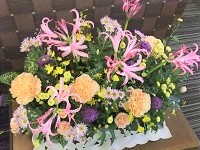 ダイヤモンドリリー、野紺菊がメインのアレンジです。