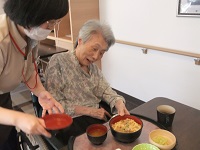 各ラウンジにておひとりお一人の分を作り、出来たての丼ぶりをお出しするので