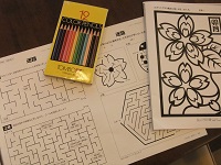 今日の脳トレメニューは、迷路と塗り絵です。