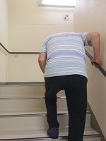 階段を使っての下肢トレーニングは、普段使わない筋肉を