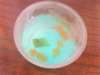 涼し気なブルーに浮かんだ、可愛いサイズの金魚が