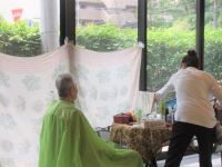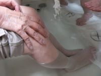 上がる時は、足元をうまく自分で拭けない方をお手伝いしてくださる