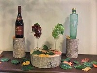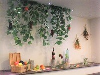廊下のディスプレイが変わり、秋の色濃い草木や食べ物が飾られています。