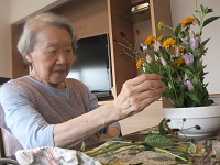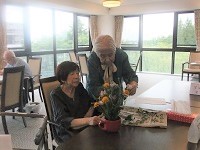 出来上がったお花は、居室の入り口やテーブルの上などに飾って