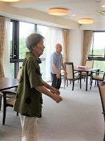 間隔をあけて、曲に合わせて大きく手足を動かします。