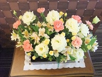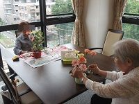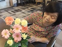 出来上がったお花を持って、いい笑顔を見せて下さいました。