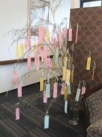 七夕の短冊もまだ飾られているので、玄関が華やかなのが
