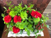 玄関のお花も新しくなり、大きなカーネーションのアレンジでした