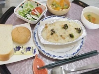 メインが「カツカレー」もしくは「パンとシーフードグラタン」となります。