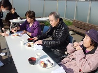 おかわりもしていただき、目の前にある公園の桜を見下ろしながら