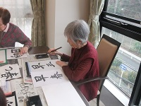 「今年は暖かくていいね」と話しながらお習字を楽しみました。