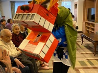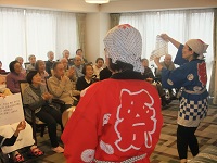 我が施設のお笑い担当?女性スタッフが布をかぶり
