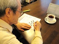 熱心に、クロスワードや穴埋め問題に取り組まれています。