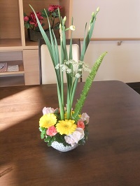 今日は、今年初めてのフラワーアレンジメントを行いました!