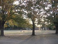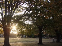 空模様です。目の前の公園に差し込む陽の光りがとても綺麗でした。