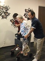 リハビリスタッフに支えられながら、歩行練習をしている最中にお邪魔して