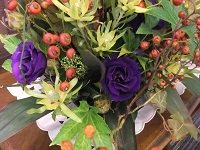妖艶で美しい紫色のトルコキキョウがメインの、高低差を出した