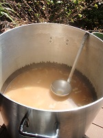 里いもがごろごろ入った汁物を大鍋で作り、おかわりをたくさん