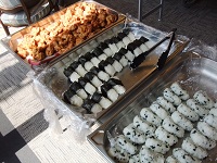 おにぎりや芋煮汁など、温かくて美味しい食べ物を