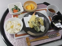 栗ごはんと野菜のてんぷら、湯葉のおひたし・・・