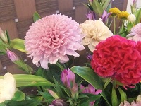 鮮やかな赤やピンクの丸いお花が可愛らしい、華やかな